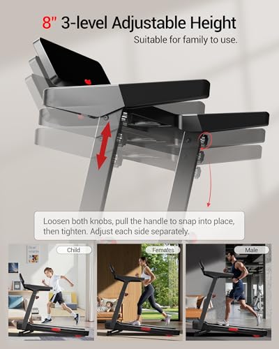 90% Pre-assembled & Space-Saving: This home treadmill features built-in transport wheels for easy movement and storage. It can be fully folded by removing just a few screws. The table height is adjustable in three positions, and the display tilt is also adjustable. These designs perfectly fit the needs of small apartments and officers.