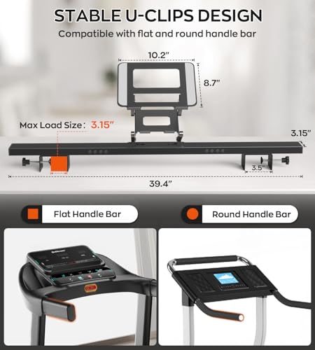 【COMPATIBLE WITH MOST TREADMILLS】This treadmill table is designed with U-shaped clamps, firm and reliable, suitable for round (1.2“-2.75”) and flat (0“-2.75”) handles. There is also the flexibility to adjust the width of the laptop stand for treadmill to fit most treadmill models