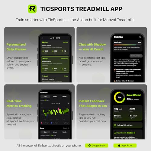 SMARTWATCH CONNECTION: Seamlessly connect any Wear OS by Google-powered smartwatch* to synchronize every treadmill session via the Mobvoi Treadmill app. Track essential metrics like speed, time, distance, and calories on the treadmill display while effortlessly recording detailed workout data, including heart rate, steps, and calories burned, directly to your smartwatch. Note: *A smartwatch that can access and download the Mobvoi Treadmill App from the Google Play Store.