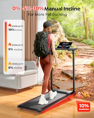 【Upgraded 10% Incline Treadmill】: Unlike ordinary walking pad treadmill, the TOPUTURE under desk treadmill has an updated 1%-5%-10% incline function, allowing you to enjoy the experience of hiking and mountain climbing at home, which can increase fitness and fat burning efficiency by 70%