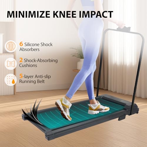 MINIMIZE KNEE IMPACT – Equipped with silicone shock absorbers, 2 shock-absorbing cushions and 5-layer non-slip walking belts, the walking machine treadmill aims to protect your knees and promote your fitness experience