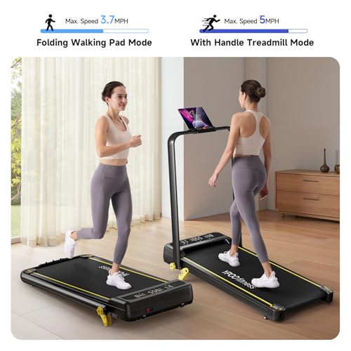 【3 In 1 Foldable Treadmill】YPOO treadmill offers a speed range from 0.5 to 5.0MPH(0.8-8.0KM/H). When the handlebar of the quiet treadmill for home is folded, it can be used as a walking pad for home, you can enter the leisure mode 0.5-3.7MPH(0.8-6.0KM/H). Raise the handle bar of the treadmill with incline for a more intense workout, with running speeds up to 5.0 MPH(8.0KM/H). Ideal for staying active while working or exercising at home.