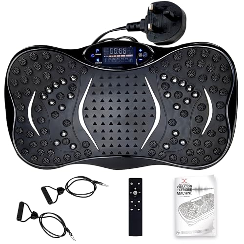 MAXSTRENGTH Vibration Plate Exercise Machine | 99 Intensity Levels & 5 Programs | Full-Body Workout | Home Fitness Equipment with Bluetooth Speakers & Resistance Bands