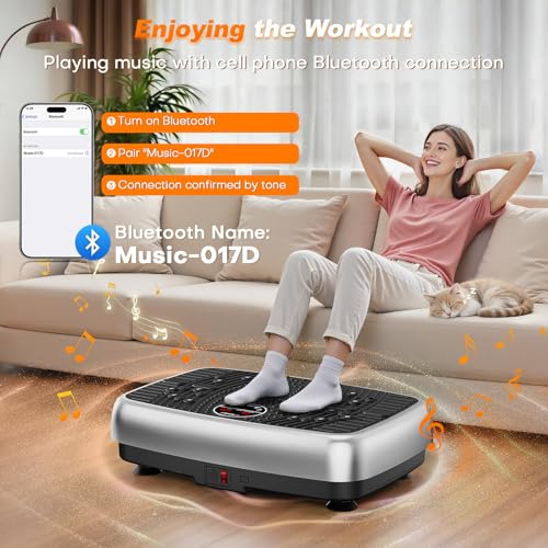 【Extremely Stability & Super Quiet】Our vibration plate is designed with a 450-pound(204kg) weight capacity and impact-resistant engineering thickened steel for extended use, The vibration plate ensures smooth operation. Its quiet motor and 4 anti-slip sucker feet deliver a peaceful experience, making it perfect for home use without disturbing anyone.