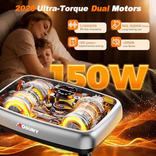 【2026 Ultra-Torque Dual-Motor System】The 2026 MOSUNY vibration plate is powered by an advanced dual-motor vibration system, delivering stronger, smoother, and more stable performance than standard single-motor machines. With over 1,000,000 precision vibrations and ultra-quiet operation under 30dB, it activates muscles efficiently, enhances calorie burn, and supports full-body shaping—helping you achieve visible results with less joint impact than traditional workouts.