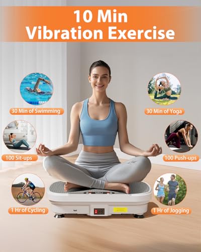 🎈【Multifunctional & Highly Efficient】: Exercise vibration plate offers 2 modes: automatic mode(P1-P9 preset vibration frequencies) and manual mode(1-99 adjustable speed). With 2 resistance bands, you can exercise upper body and lower body at the same time, which promotes muscle toning and fat loss. Just 10-20 minutes a day on the vibration plates can bring significant benefits