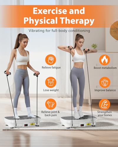 Vibration Plate Exercise Machine, Vibration Plate for Weight Loss Lymphatic Drainage Machine, Vibration Fitness Trainers with Resistance Bands, Vibrating Exercise Equipment for Home Use Gym Equipment