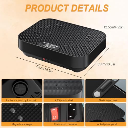 Premium Quality: The Vibration Plate Exercise Machine has a powerful 200W motor that delivers consistent, robust performance. High quality construction and materials allow for a maximum weight capacity of 150kg, ensuring stability and safety during use. The non-slip base prevents the machine from sliding during operation, while the silent motor technology ensures a quiet and comfortable experience.