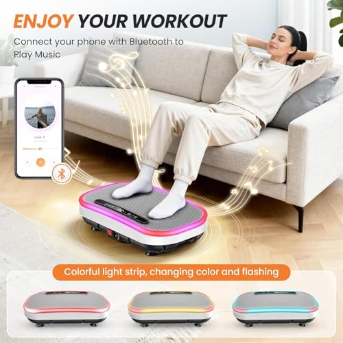 【Excellent Stability】The slim vibration platform can support 150 kg and features a thick steel frame and shock-resistant design for smooth and stable operation. Incredibly lightweight, it is ideal for those who want to work out at home. Easy to carry and store, it targets the legs, arms, abdomen, glutes and even the core, while promoting overall well-being.