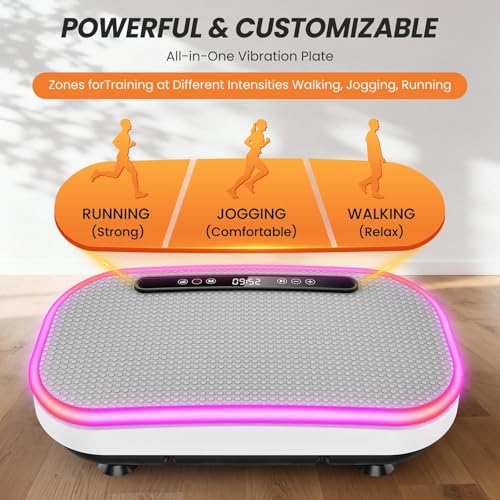【9 Programs & 120 Intensity Levels】This vibration platform for weight loss at home offers nine adjustable modes and intensity levels, ranging from 1 to 120. Modes P1 to P3 are suitable for beginners, modes P4 to P6 for people with arthritis and fibromyalgia, and modes P7 to P9 for advanced intensity levels. Each mode corresponds to a different vibration intensity, allowing you to customize your workout according to your abilities, energy level, and goals.