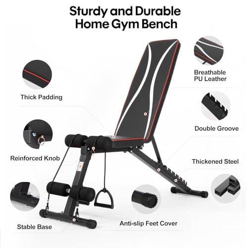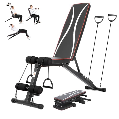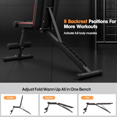 【Versatile 8-Position Adjustable Bench】Crafted as the ultimate adjustable weight bench for home gym, it features 8 backrest adjustment for flat, incline, and decline workouts. Perfect for a wide range of upper and lower body exercises with dumbbells or barbells, this multi-function strength training bench helps you efficiently build and maintain muscle. Includes 4 resistance bands, making it an ideal adjustable workout bench for home fitness or weight loss programs, suitable for everyone from beginners to experts.