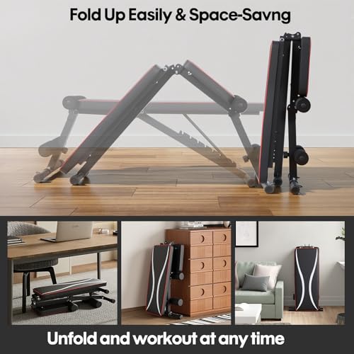 【Space-Saving Foldable Design】Maximise your workout area with our foldable workout bench. Its clever foldable and save space design allows for quick and easy storage, making it the perfect compact adjustable weight bench for small spaces. Simply lean it against a wall or tuck it into a corner. An essential, space-efficient solution for any small home gym or garage setup.