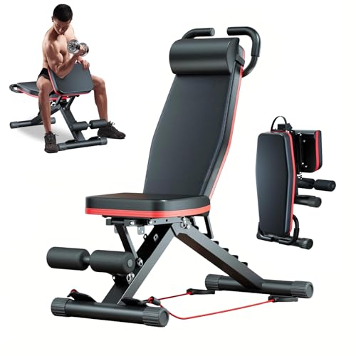 Adjustable Weight Bench, 6-Level Incline Flat Workout Bench, Leg Support, Foldable Heavy-Duty Steel Training Bench, Resistance Band Anchors, Full Body Strength Training Home Gym Exerciser