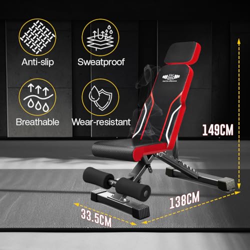 [Space-Saving Foldable Weight Bench – Folds in Seconds] This foldable weight bench transforms from full-size (149×33.5×138CM) to compact storage (81×25×34CM) without tools. Ideal exercise bench for home use, especially in apartments or small workout spaces where compact home gym equipment matters.