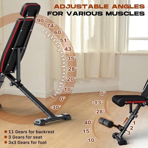 Foldable Weight Bench, Adjustable Workout Bench Press with Multifunctional Adjustment Design for Full Body Workout, 400kg Exercise Bench Fast Folding Incline Flat Decline Bench for Home Gym