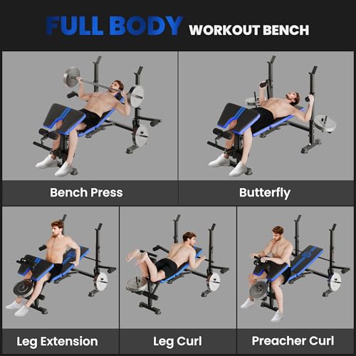 Six-in-one: Transform your fitness routine with our 6-in-1 multi-functional weight bench, which combines a bench press rack, leg extension, preacher curl pad and butterfly machine into one compact unit for full-body workouts.