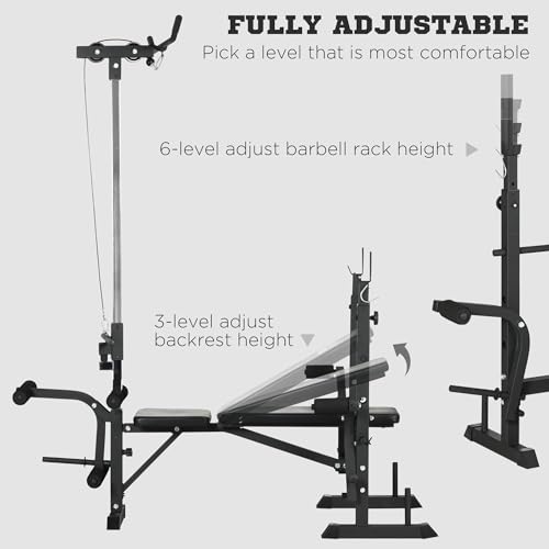 HOMCOM Adjustable Weight Bench with Pulley System, Incline Bench Press Set with Squat Rack, Leg Developer, Butterfly and Weight Storage, for Home Gym Full Body Workout
