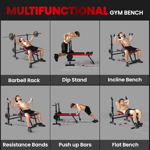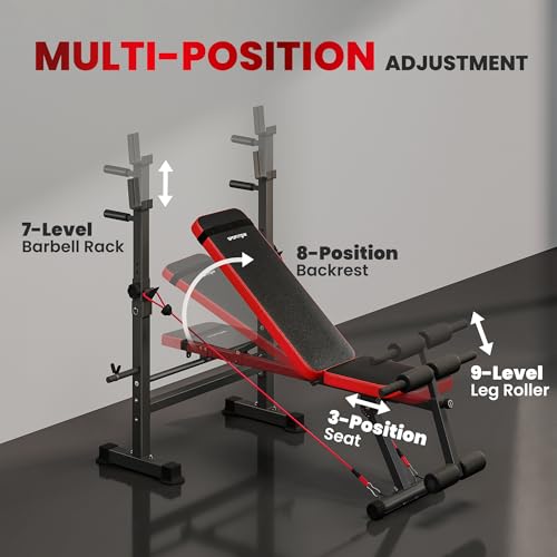 Adjustable positions: With options like seven rack heights (ranging from 95-122 cm), eight backrest angles and three tilted seat positions, this workout bench caters to various heights and fitness levels.