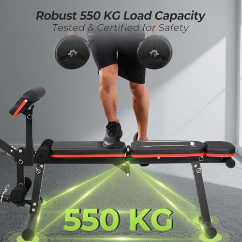 Upgraded Adjustable Weight Bench with Leg Extension and Leg Curl, 9 Back Positions & Foldable, 550 KG Load-Bearing Workout Bench for Home Gym, Bench Press for Full-Body Strength Training