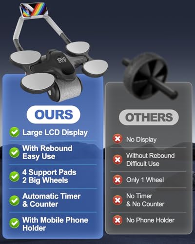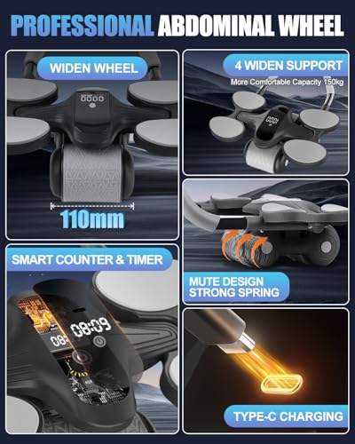 Intelligent Fitness: This upgraded abdominal roller features timer, counter and calorie calculation functions. Unlike its predecessor, it now counts each round, providing practical real-time exercise data. The integrated full LCD display screen and Type-C charging port offer enhanced convenience and user experience.