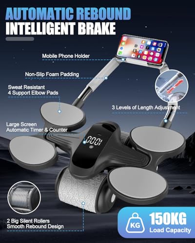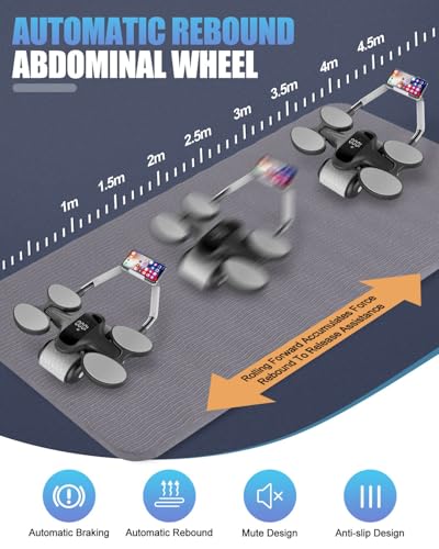 Automatic Rebound Abdominal Roller Upgrade Timer Counter Calorie Calculation LCD Display Elbow Support Rebound Ab Roller Exercise Wheel Easy Assembly Stomach Exercise Equipment for Home Men Women