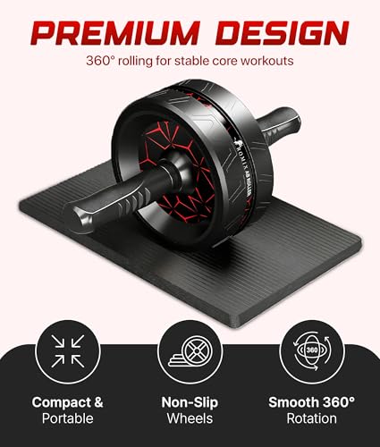 ROMIX Ab Roller Exercise Wheel with Extra Thick Non-Slip Knee Mat, Abs Roller Wheel, Abdominal Wheel, Exercise Wheel for Gym Workout Cruncher Trainer, Ab Wheel Roller Exercise Equipment for Home Use