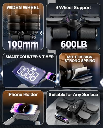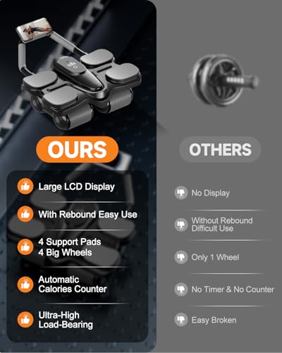 【Smart Counting & Fitness】Equipped with advanced smart counting technology, the ab roller provides tracking of your workout data. It clearly records time, calorie consumption, and exercise counts, transforming your fitness routine into a data – driven journey. No more blind workouts–with this ab roller wheel, you can scientifically control your exercise intensity and design personalized fitness plans for smarter, goal-oriented training