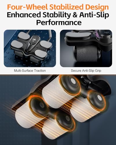 Victoper 2025 Ab Wheel Roller with 4 Whees Smart Counting & Track Calories,Load-bearing 300kg,Exercise 6 Muscle Groups,1.7M AutoRebound,Ab Roller Exercise Wheel with Knee Mat for Home Fitness Gym Use