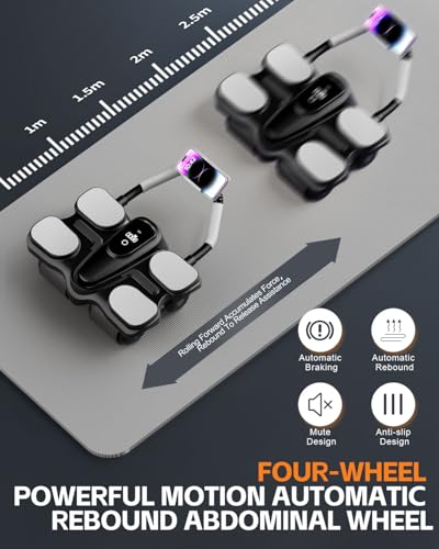 【1.7m Auto-Rebellent Technology】This ab roller wheel features an industry – leading 1.7m automatic rebound distance, far exceeding the 1.4m of ordinary ab roller wheels. Once fully extended during your workout, this ab roller smoothly rebounds to the starting position, eliminating the need for strenuous manual resetting. This not only makes it extremely friendly for beginners, as it reduces the risk of muscle strain and ligament injury caused by improper resetting, but also allows for a more thorough stretch of abdominal muscles