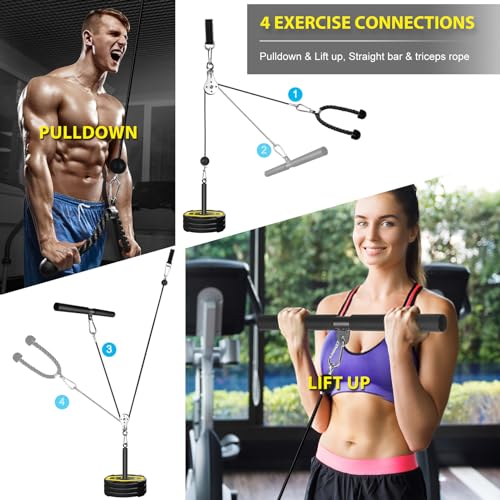 Cable Pulley System Home Gym, Cable Pulley System Fitness Home Cable Pulley Attachment Home Gym Equipment for LAT Pull Down, Arm Workout