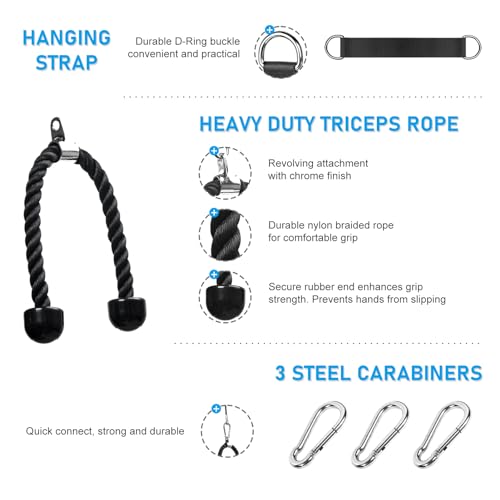 High-quality materials: The main frame of this pulley system gym attachment is made of solid steel construction with a powder-coated finish, ensuring durability and longevity. The silent pulleys of this cable machine home gym attachment remain stable during workouts, providing a smooth and quiet operation without any extra noise.