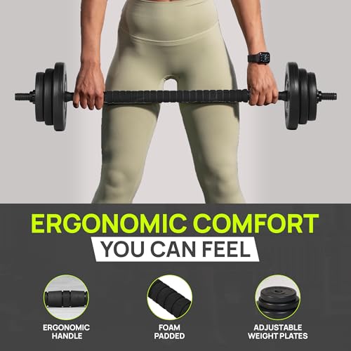 EFFORTLESS ADJUSTMENTS & SPACE-SAVING DESIGN: The adjustable dumbbells feature user-friendly screw locks, enabling quick and hassle-free weights changes to customize your workout. Designed with convenience as a priority, this versatile weights dumbbell set for men and women can be stored compactly, making it perfect for home gyms or small spaces. Whether you’re targeting strength, endurance, or toning, this barbell weights set provides a seamless solution for achieving your training goals.
