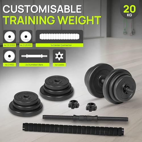 QUICK AND EASY TO USE: Adjustable dumbbells weights set for men and women are an excellent choice for creating a compact home gym system, perfect for any strength training workout routine. With this 20Kg dumbbell set, you can perform chest presses, squats, lunges, curls, rows, and a variety of other exercises to target multiple muscle groups. Ideal for fitness enthusiasts of all levels, it offers versatility and convenience to maximize your workouts in a small space.