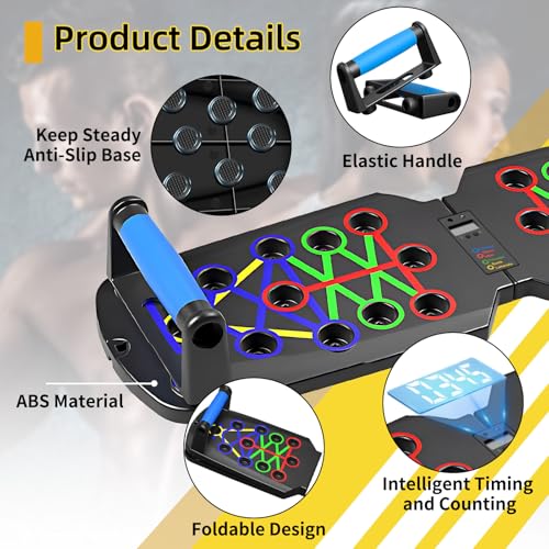 Smart Counting Pushup Board: Push-up board with hd led display, sensitive and precise sensors to automatically track the number of push-ups you do and the time you take to do them. Simply switch on the button to automatically count and time your push-ups. Keep track of your push-ups at all times. say goodbye to blind training, plan your workouts wisely and reach your fitness goals at any time