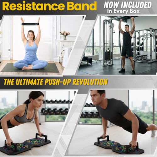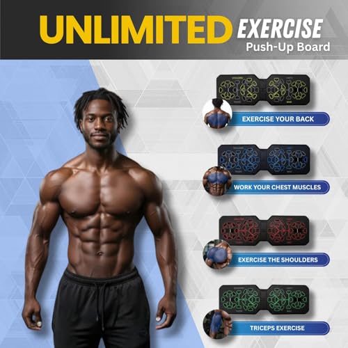BUILD A STRONGER UPPER BODY FAST – 24-in-1 color-coded push-up board with included resistance bands targets chest, shoulders, triceps, and back for intense, effective home workouts.