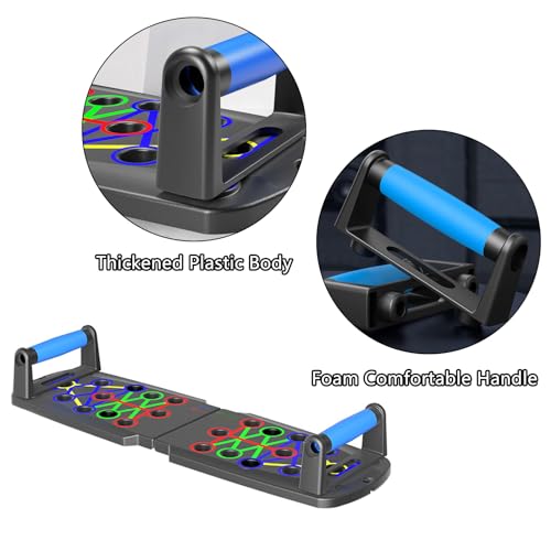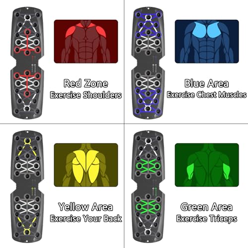 Multifunctional Push Up Bar: This push-up board has 14 symmetrical color-coded guides, designed for different muscle groups (chest, shoulder, abs, biceps, back), and provides a variety of efficient push-up postures.