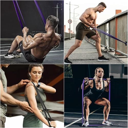 Transform your fitness routine with our premium 4-level resistance bands set! This complete system includes color-coded bands (Yellow 5-15LBS, Red 15-35LBS, Black 25-65LBS, Purple 35-85LBS) made from durable natural latex that stretches 3-4x without breaking. Perfect as pull up assistance bands or full-body workout equipment, these 208cm exercise bands target all muscle groups including chest, back, core and limbs.