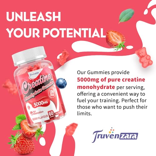 High Creatine Content: Unleash the power of Truvenzara creatine monohydrate gummies complex! Each 2-gummy serving delivers an impressive 5000mg of pure creatine monohydrate, formulated to support strength, endurance, and muscle recovery. The precise dosage per serving ensures consistent and reliable intake. Whether you’re a fitness enthusiast, an athlete, or a bodybuilder, these gummies provide a potent dose of research-backed performance-enhancing supplements.