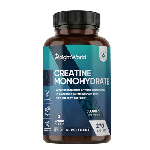 Creatine Monohydrate 3000mg – 270 Vegan Tablets – 3 Months Supply – Micronised for Easy Absorption – Creatine Monohydrate Powder Tablets for Men & Women – Unflavoured, Keto-Friendly & Gluten-Free