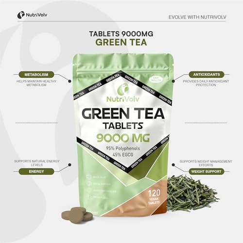 Green Tea Tablets Pure Vegan Weight Loss Pills 9000mg Keto Diet Slimming Supplements for Men and Women Gluten-Free & Metabolism Booster — Pack of 120