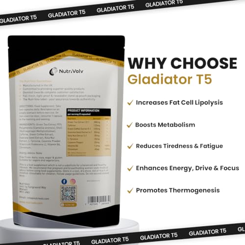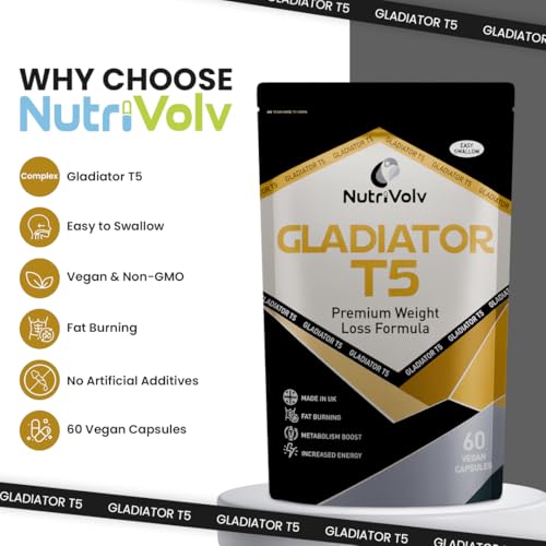 NutriVolv Gladiator T5 Maximum Strength Weight Loss Pills That Work Fast, Keto Shred Fat Burning Pills wit Kola Nut, Green Tea, Acai Berry & Caffeine | Thermogenic | 60 Capsules