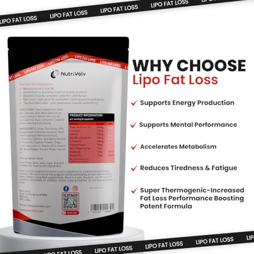 NutriVolv Lipo Fat Loss Capsules | 60 Capsules | Maximum Strength Weight Loss Pills That Work Fast | Keto Shred Fat Burning Pills | Contains Cayenne, Green Tea, Acai Berry & Caffeine | Thermo Fat Burn