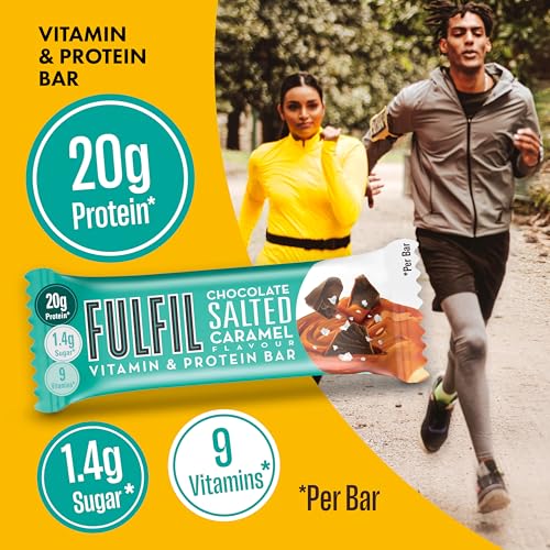 FULFIL Vitamin and Protein Bars (15 x 55 g Bars) — Chocolate Salted Caramel Flavour — 20 g High Protein; 9 Vitamins; Low Sugar