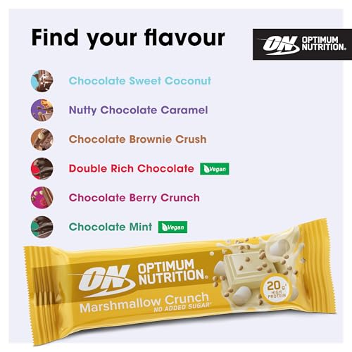 You’ve had enough of tasteless protein snacks? Crave more than just another protein bar? Discover an unparalleled taste experience with Optimum Nutrition. We’ve been raising the Gold Standard in sports nutrition for over 35 years, proving that flavour and nutrition can coexist in harmony to elevate your fitness journey. Just as you don’t settle for second best in your workouts, why should your gym snacks be any different? Our protein snacks with no added sugar* don’t compromise on taste. ON protein bars, packed with 20 g of protein, serve as a delicious snack alternative. At Optimum Nutrition, we celebrate great taste. Our vegetarian protein snacks come in delicious flavours – savour the crunchy texture of our Chocolate Brownie Crunch and Marshmallow Crunch bars, or indulge in the Nutty Chocolate Caramel, teeming with peanuts and raisins. Perfectly suited for any time of the day, the ON protein bars are your go-to pre- and post-workout snack for both men and women. *Contains naturally occurring sugars