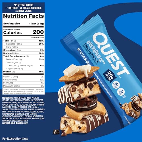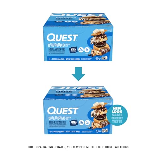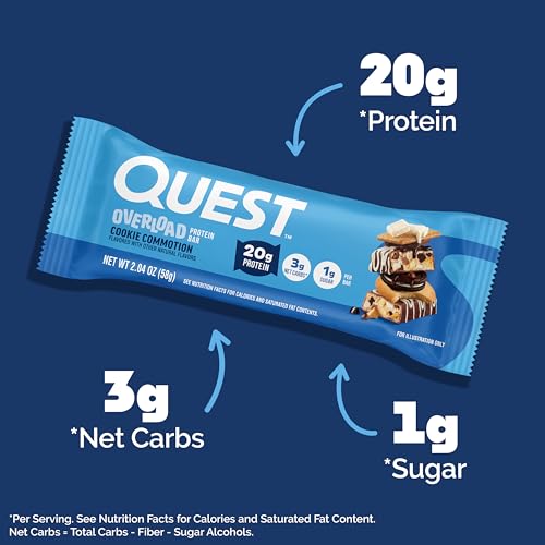 Quest Nutrition Overload Protein Bars, Cookie Commotion, 20g Protein, 1g Sugar, 3g Net Carbs, Gluten Free, 12 Count