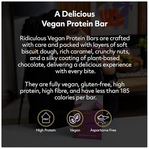 AWARD-WINNING TASTE & TEXTURE: Experience our ‘Ridiculous’ multi-layered vegan protein bar that combines indulgent biscuit dough, crunchy nuts, and smooth caramel. Finally, a plant-based protein bar that tastes like a real treat while supporting your healthy lifestyle.