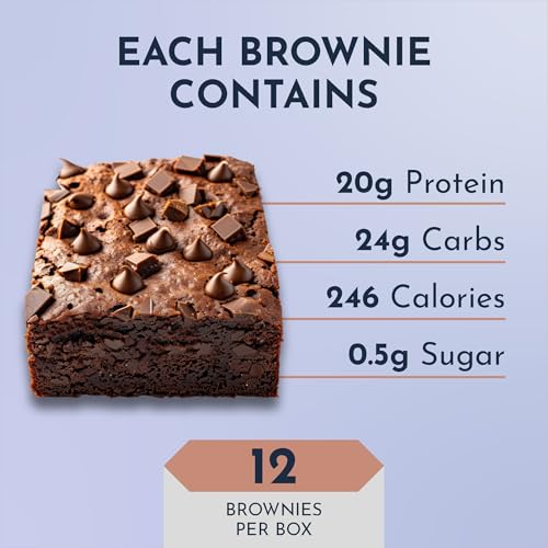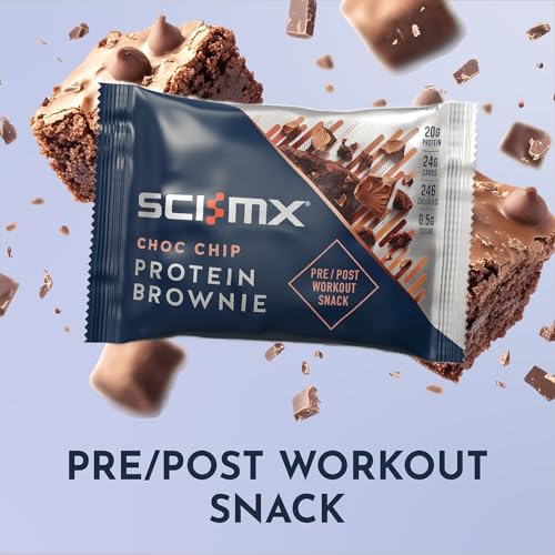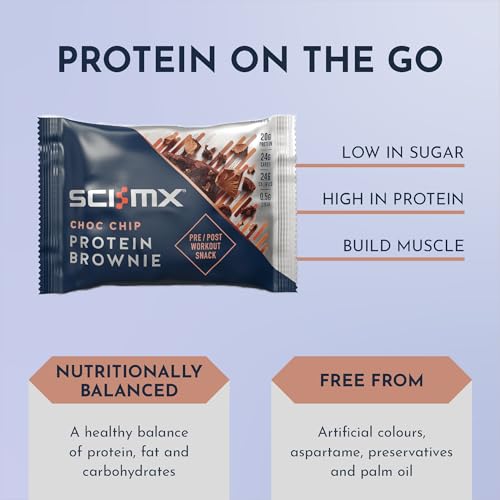 SCI-MX High Protein Chocolate Chip Brownie Box – 20g protein, 0.5g sugar + 246 calories per brownie – Pack of 12 x 65 g – Low Sugar – Pre / Post Workout Snack – No Palm Oil – Suitable for Vegetarians