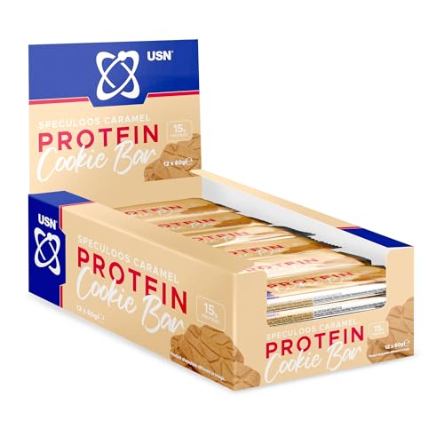 USN Trust Caramel Biscuit Cookie Bar: High Protein Bars, Perfect On-the-Go and Post-Workout Protein Snacks (12 x 60 g Bars per Pack), Red/Blue