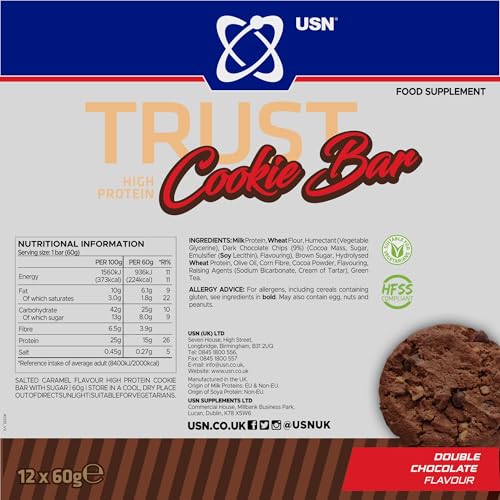 USN Trust Cookie Bar, Triple Chocolate Protein Cookie: High Protein Bars, Perfect On-the-Go & Post-Workout Protein Snacks (12 x 60g Bars per Pack)
