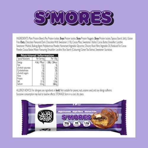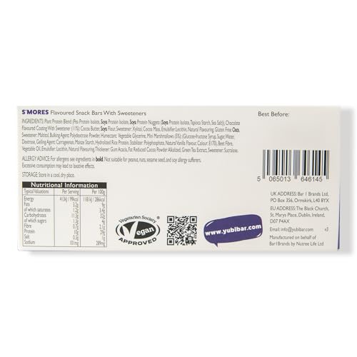 Yubi S’Mores – 12 Pack – Protein Bars – 99 Calories, High Protein, High Fibre, Low Sugar, Gluten Free and Dairy Free – Healthy Snacks/Nutrition Bar – Chocolate Bars – 420g